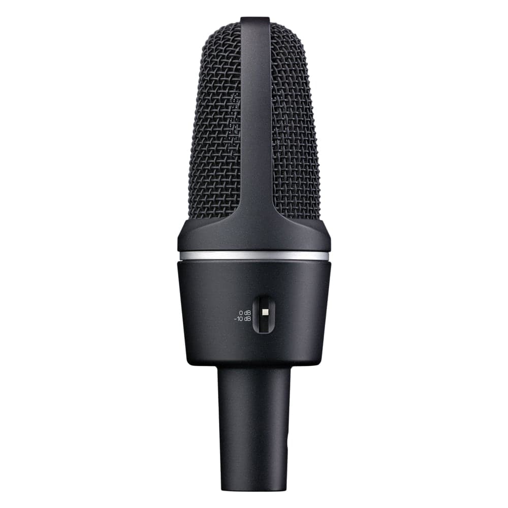 The AKG C3000 high-performance, large-diaphragm condenser microphone has been a standard for live applications and studio recording for almost two decades. It is an excellent choice for vocals, electric and acoustic guitars, drum overhead and brass instrument miking. The switchable attenuation pad and low-cut filter enable high SPL up to 150dB and eliminate proximity effect. The redesigned C3000 presents itself as a cost-effective, rugged workhorse with a sleek and classy finish.
