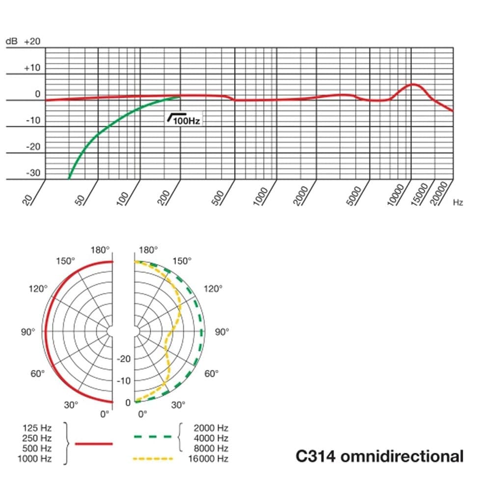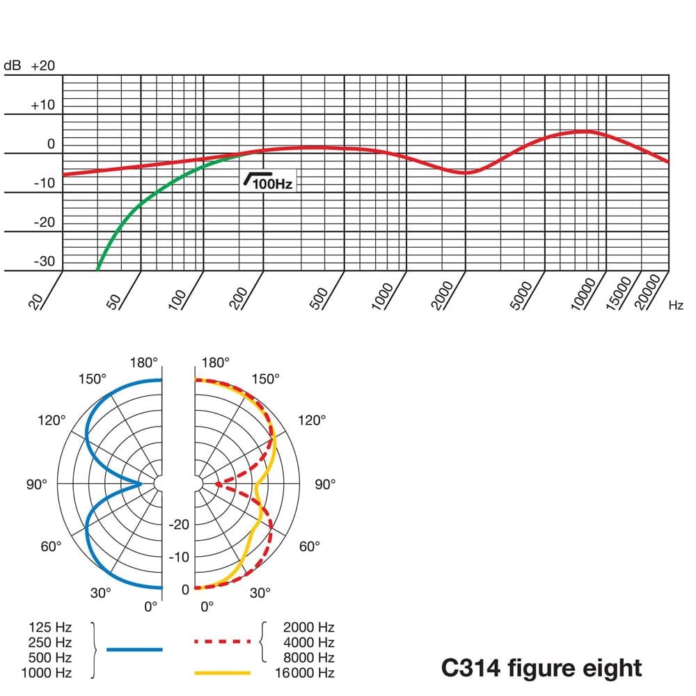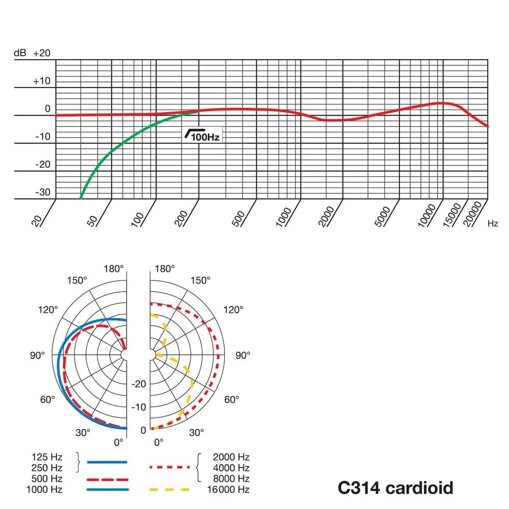 Whether you’re recording in a large concert hall or a one-room studio, you want to capture the emotion and moment, not just the sound. With a full frequency range of 20Hz – 20kHz and the lowest self-noise in its class, the C314 brings out the best in every nuance. Built on the rich heritage of the C414 XLS capsule, its dual computer-matched diaphragms guarantee the highest polar pattern accuracy, while the integrated suspension dramatically reduces noise for pure, faithful recordings.TUNED TO CAPTURE EVERY NUANCE - FOUR SELECTABLE POLAR PATTERNS