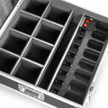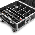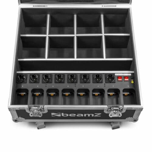 Beamz FCC10 Combi Charging Flightcase is the perfect solution for safely transporting and charging BBP54 wireless battery uplight fixtures. This sturdy flight case holds up to 8 fixtures and 8 battery packs with enough space for all power cables.