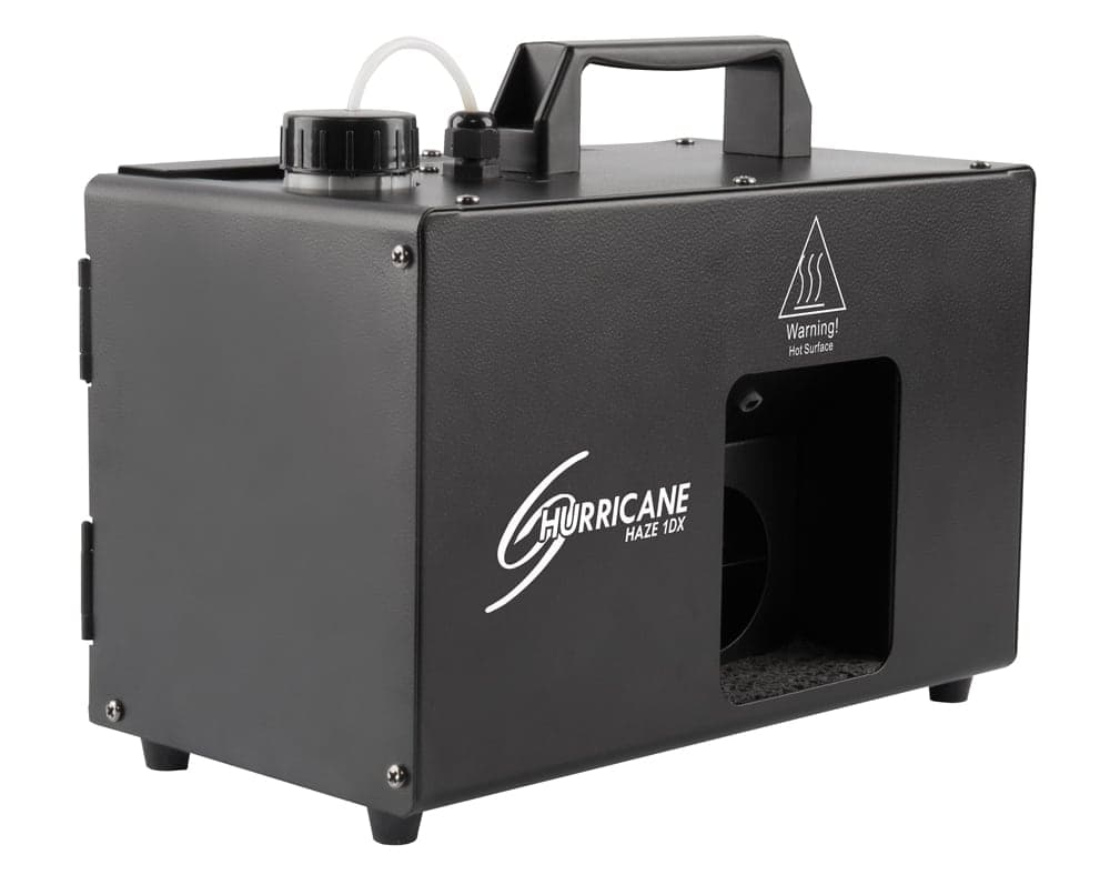 The Chauvet DJ Hurricane Haze 1DX gives you a light water-based haze machine. Designed to enhance any light show, the Hurricane Haze 1DX will create a thin layer of haze to allow your lights to shine through. You can also control it via DMX address, or in stand-alone mode using the digital display. On top of that, you can adjust the haze output speed with no controller required. Thanks to its silent running fan, the Hurricane Haze 1DX can be used in any environment without making unwanted sounds. It’s also extremely compact in size so you can discreetly place it in any location. Finally, a built-in sensor inside the Hurricane Haze 1DX helps prolong your hazers life by stopping the pump automatically when your fluid level is low.