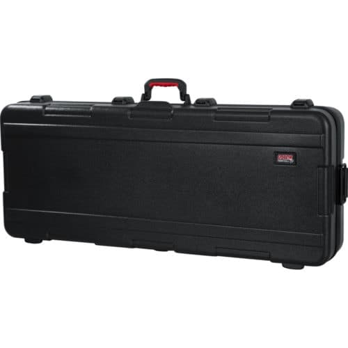 Gator GTSA-KEY61 61 Key Keyboard Case TSA Series with Wheels lets you travel in safety and style. The TSA Series ATA Keyboard Case for 61-Note Keyboards from Gator Cases was designed for safe airline transport, the case is equipped with four surface-mounted impact-diversion latches, each with a red release trigger; two of the latches are special TSA-approved latches which allow you to keep your case safely locked while travelling. The interior of the case features a plush black fabric to prevent scuffs and damage along with a customizable wedge & block system which securely holds the keyboard in place during transit. This case's internal cavity is truly deluxe, the security provided for your 61-key digital piano or keyboard instrument is next level, the adjustable wedges also allow excess space to be used for storing your cables, foot switch, and other accessories, so you won't have to worry about multiple bags at the airport. Heavy-duty and durable, this case is built out of nearly-indestructible polyethylene plastic with black powder-coated hardware and a continuous valance that gives extra rigidity by spreading the support evenly around the perimeter of the case, literally built to military specs. Built to give you peace of mind when you're sitting on the plane. Recessed in-line wheels and a durable injection-molded ergonomic rubber-gripped top handle make for easy handling of the heaviest keyboards. The Gator GTSA-KEY61 61 Key Keyboard Case TSA Series with Wheels makes your large and heavy keyboard manageable to haul through the airport or up to the stage, two additional spring-loaded rubber grip side handles allow for two-man carry configurations if needed. Keyboardists everywhere stand behind their Gator TSA/ATA cases for their exceptional strength and protection in transit. Whether you fly with your keyboard or just want a rugged case for your rig, Gator is your answer.