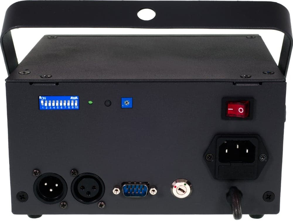 The Laserworld EL-230RGB is a compact RGB laser system with a total output power of up to 230 mW. Designed for mobile entertainers, private parties and smaller venues. The laser comes with a safety key and is fitted with an interlock for added safety. Supplied with 50 built-in patterns including; layers, tunnels, fences, waves etc. that can be operated via the stand-alone and sound-to-light modes. For the sound-to-light mode the sensitivity of the integrated adjustable microphone can be adjusted. For more dynamic effects the laser can be controlled via DMX Powering the laser projector are 3 primary modules; Red, Green, and Blue. The red diode laser module with a wavelength of 650 nm, the green DPSS laser module with a wavelength of 532nm, the royal-blue laser module with a wavelenght of 445 nm ensure beautiful colors and brightness. The beams have a diameter of about 4 mm and a beam divergence of about 1 mrad and the projector offers high-speed stepper motors with 2-5 kpps as well as a scan angle of up to 30°. For great coverage and effect. For the best effect we recommend combining your laser projector with a smoke, or haze machine. This will allow you to see the beams of the laser in mid-air and will give your next party or event the WOW factor it deserves.