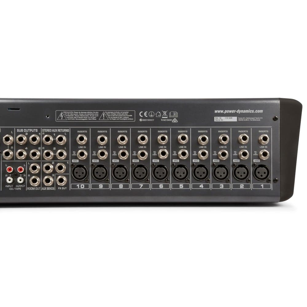 The Power Dynamics PDM-S2004 is a professional 20-channel dual function PA mixer loaded with features. Split into 2 sides with 10 channel per side, 4 sub groups, aux sends, and more. Everything you need to get a great mix for your production or event. The PDM-S2004 has 20 selectable mic/line mono inputs, each with low noise transparent microphone preamps. Also included is a 24-bit digital multi-FX processor, USB MP3 Player, and dual 9-band graphic EQ for adding extra depth and tone to your productions. A must have for any house of worship, school, small theatre, and more.Features