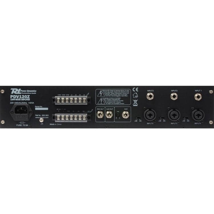 The Power Dynamics PDV240Z is a professional 100V power amplifier with 240W RMS power output and 4 outputs for zone / area control. Perfect for installations in venues such as restaurants, cafes, and sporting clubs.