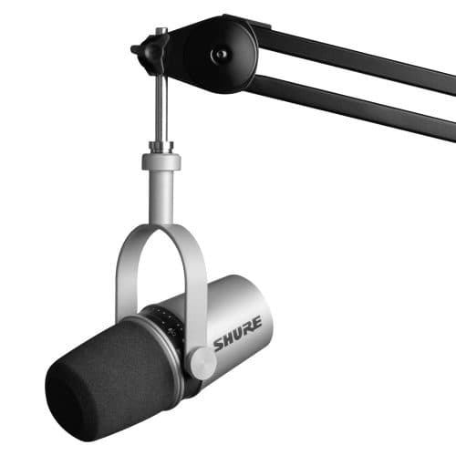 Inspired by the renowned SM7B, the Shure MV7 in Silver brings you a dynamic podcast microphone with both USB and XLR outputs. Allowing you to use it with both computers and professional audio interfaces alike.