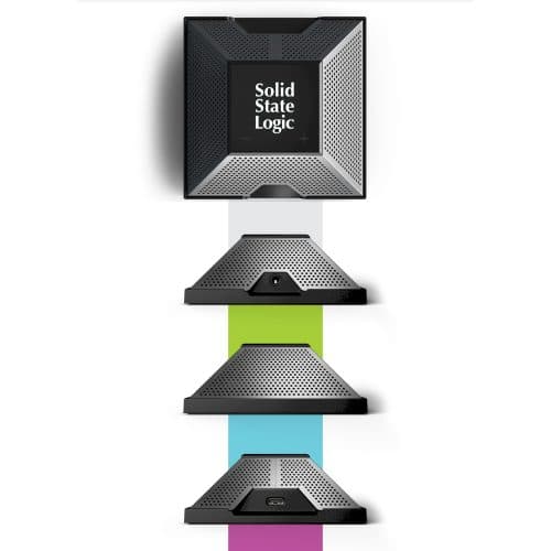 - Backlit RGB-illuminated Solid State Logic logo indicates mic mute state and user mode.