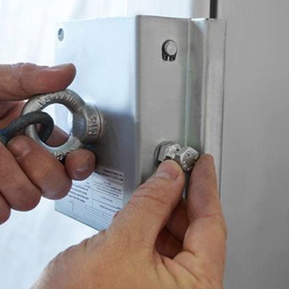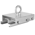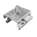 The Trusst CT-Tent is an adjustable clamp designed specifically for use with clear span tents using Keder grooved beams. The Tent Clamp allows you to create a hang point on the support beams where no other attachment is possible. The Tent Clamp provides a safe and secure connection and supports weights of up to 150kg. The Tent Clamp allows for a quick and easy connection with standard rigging shackles and round slings or wire rope to provide a safe connection point to hang lighting, audio, and decor elements on the beams. Made of zinc plated steel with a permanently attached eye bolt, there is also a built-in safety cable attachment point.