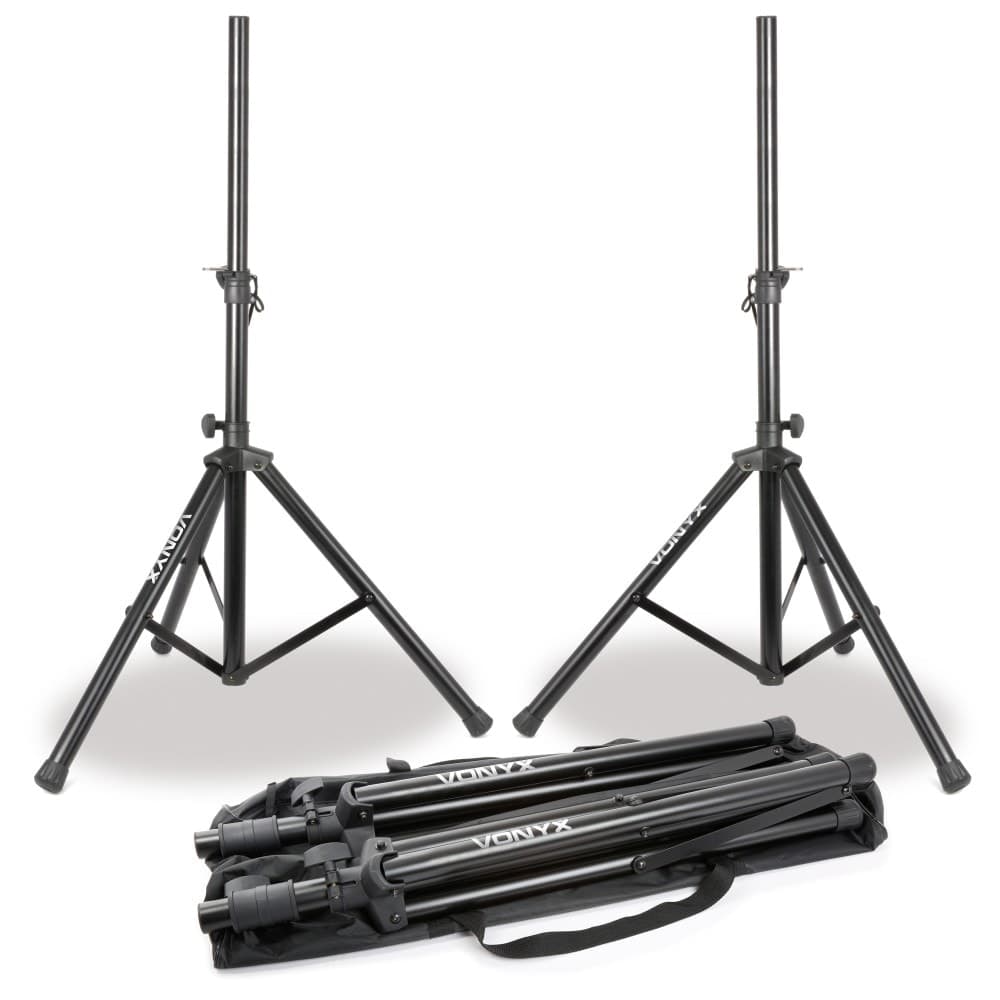 The Vonyx 180550 is a popular professional speaker stand kit including 2x durable speaker stands and a carry bag. Made from high quality materials, the stand also features a safety lock-pin for ensuring that your speakers are safe while on these stands. Perfect for any mobile performer.