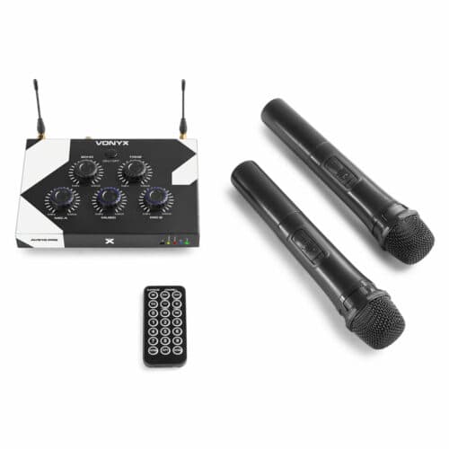 The Vonyx AV510 brings you a 2-in-1 karaoke microphone and sound mixer system. It provides you with two UHF wireless microphones. This means you and a guest can enjoy singing along to your favourite tunes together at the same time.